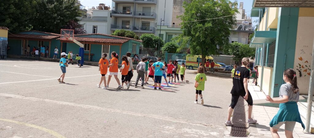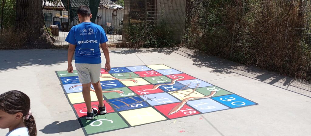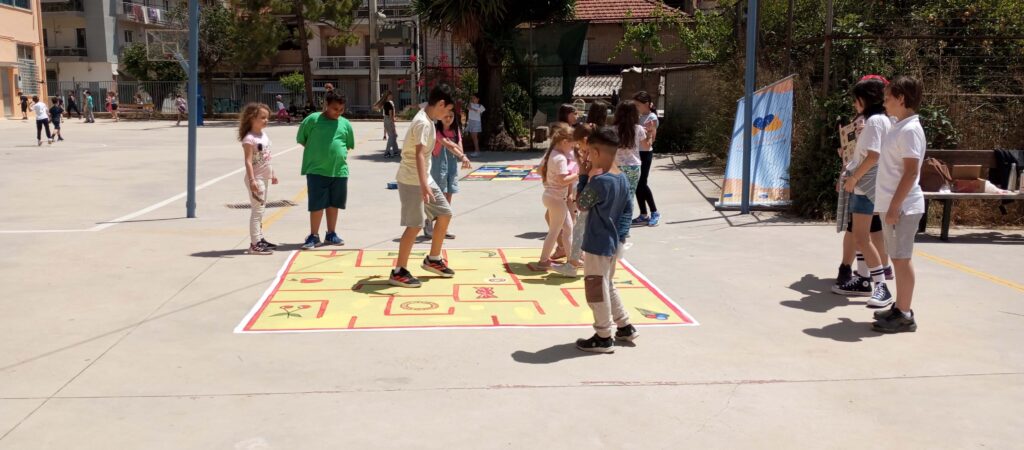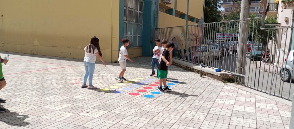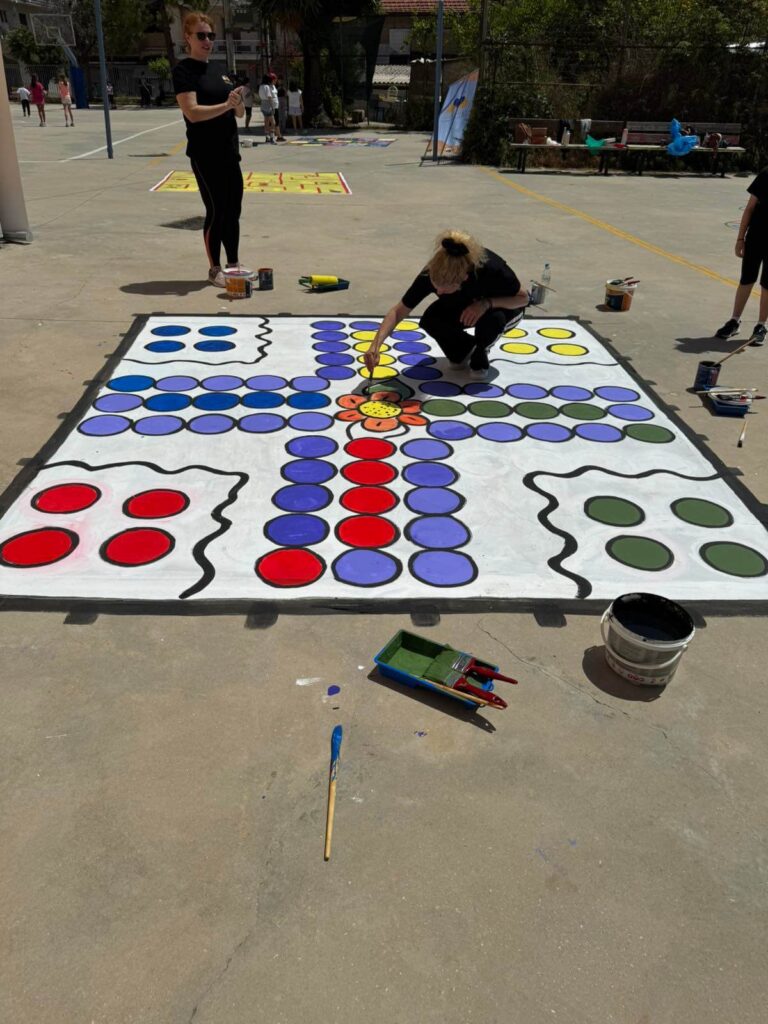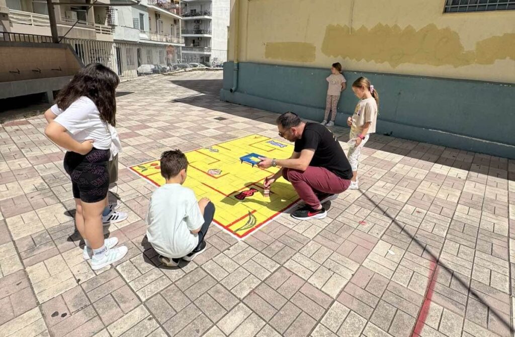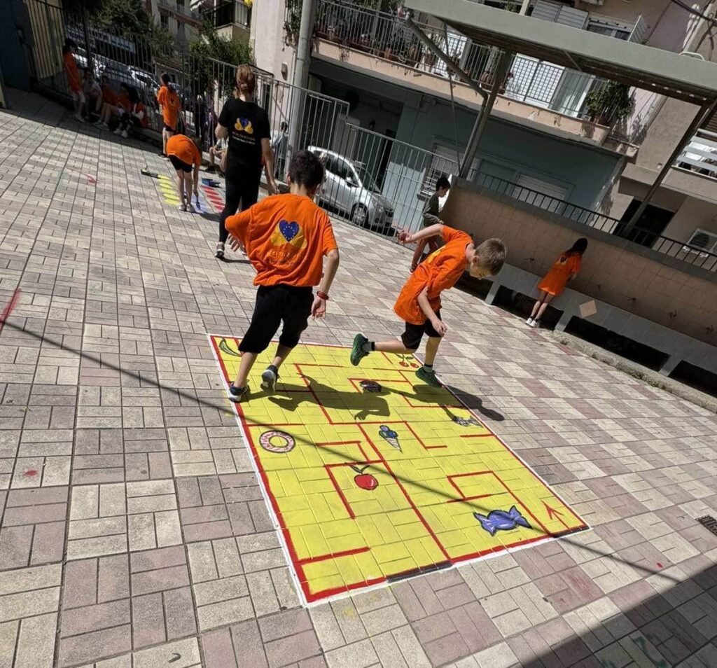 Οι μαθητές ζωγράφισαν υπό την καθοδήγηση του ζωγράφου κου Κωνσταντίνου Αρταβάνη και της κα Βασιλικής Αρταβάνη από το Εργαστήρι «Μορφές Τέχνης» και έπαιξαν με την ψυχή τους αγαπημένα παιχνίδια στο προαύλιο χώρο του σχολείου τους.